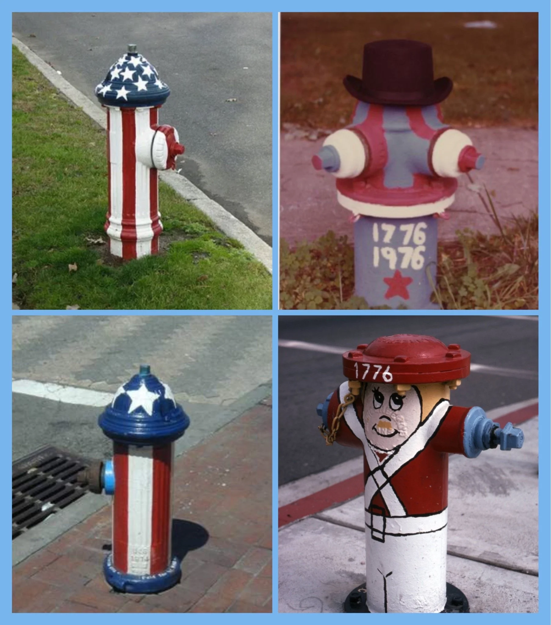 During 1976, many towns and cities encouraged their residents to paint fire hydrants in a Bicentennial motif. Who let in the Red coat?